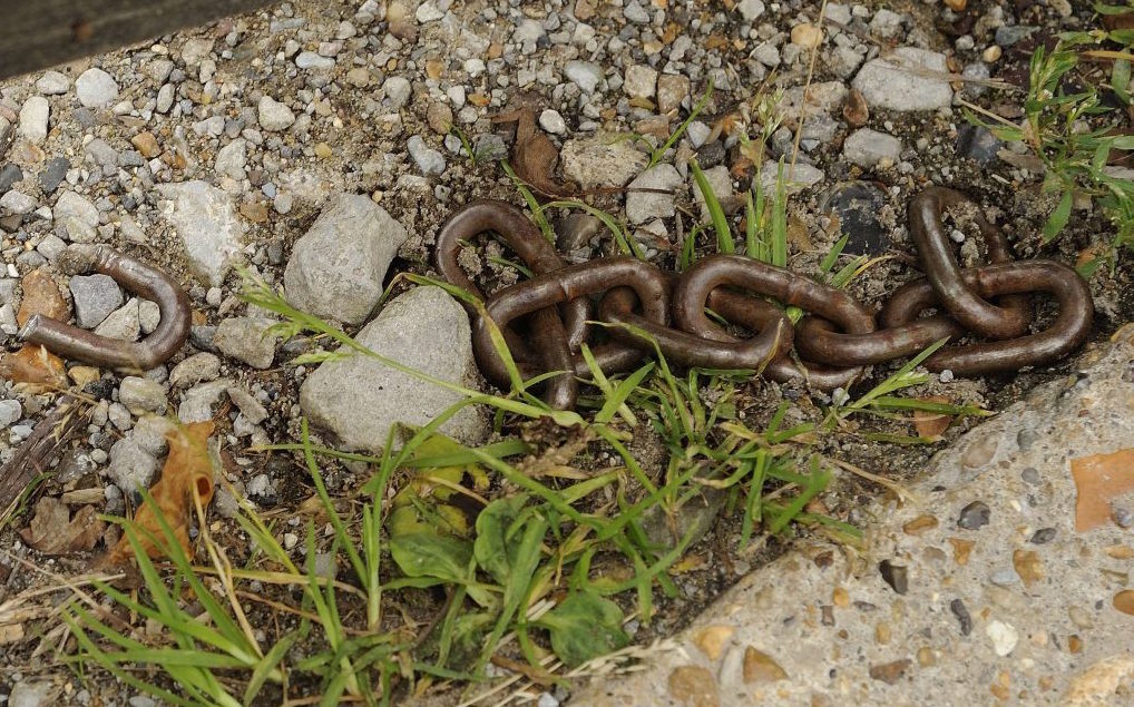 The heavy chain that had apparently been cut with a bolt cutter to allow vehicle access to the playing field site – Photo courtesy of Effingham Residents Association.