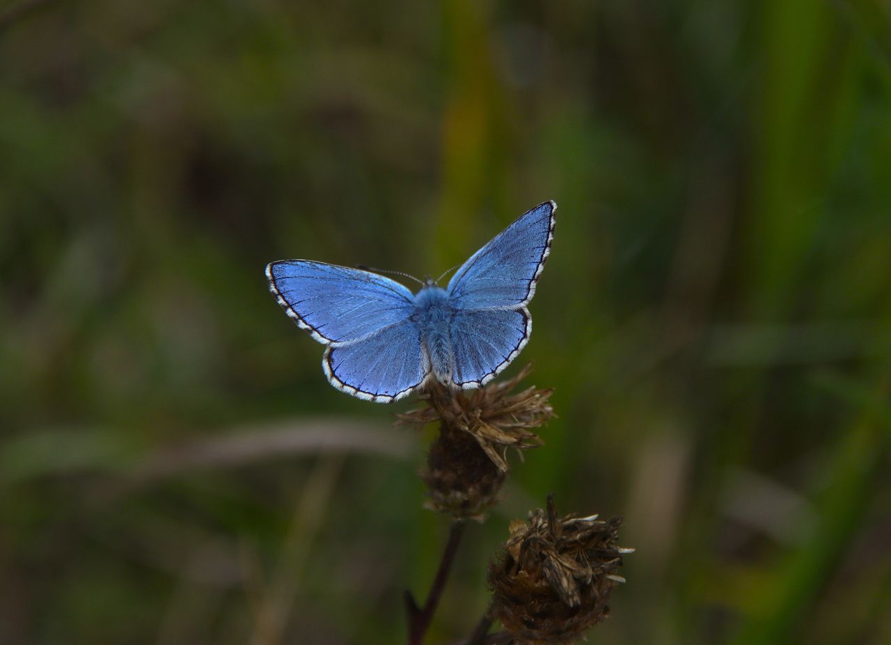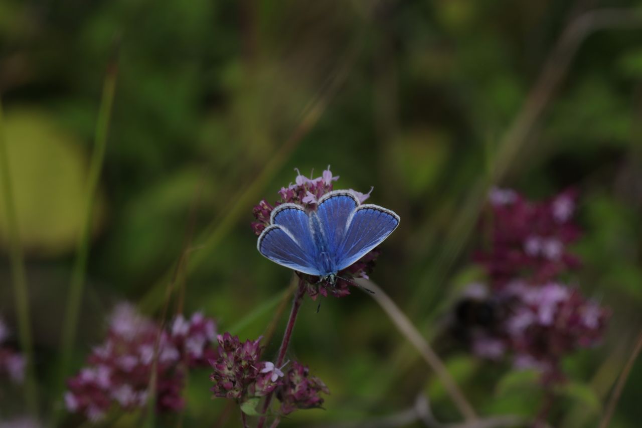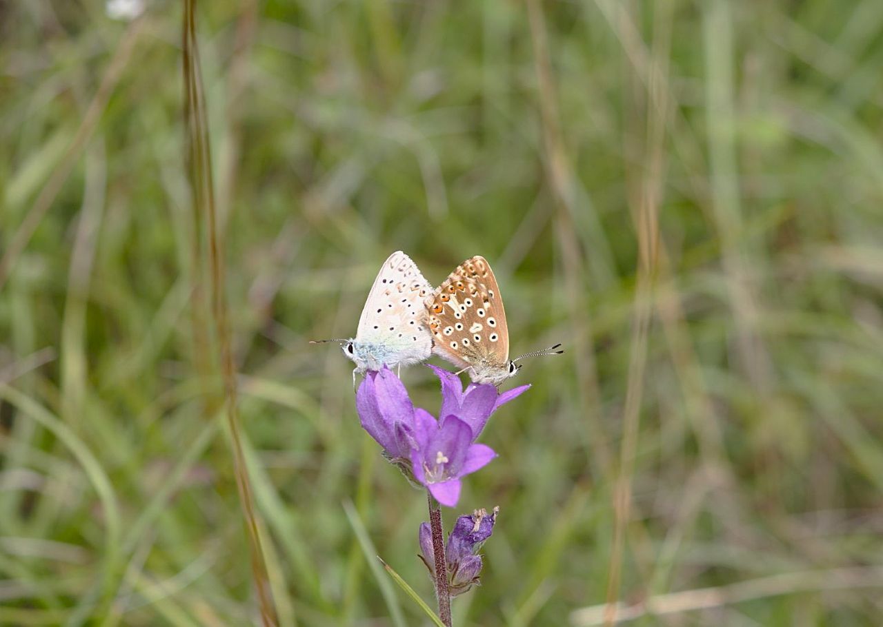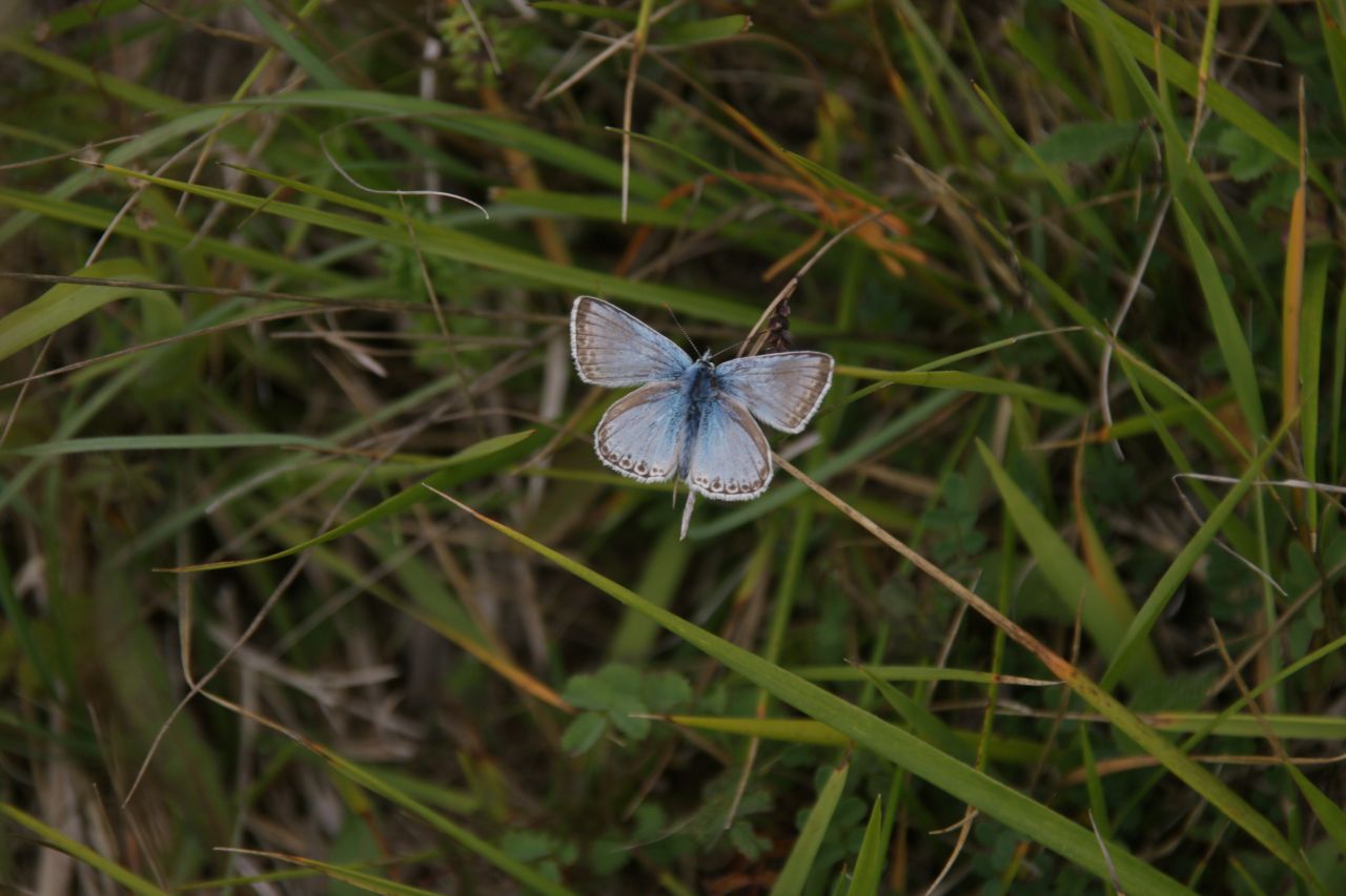 Chalkhill blue butterflies were still present, although now starting to dwindle in number since previous visits, with some seen mating to complete their life cycle.