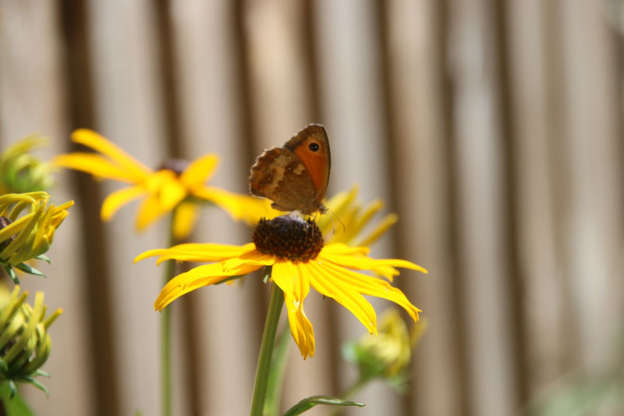 Although loving the sunshine perhaps more than the heat of it loves me, I was eventually encouraged by the annual visit of a gatekeeper butterfly outside my back door.