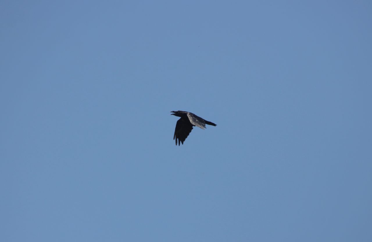 On one occasion a raven made an appearance overhead.