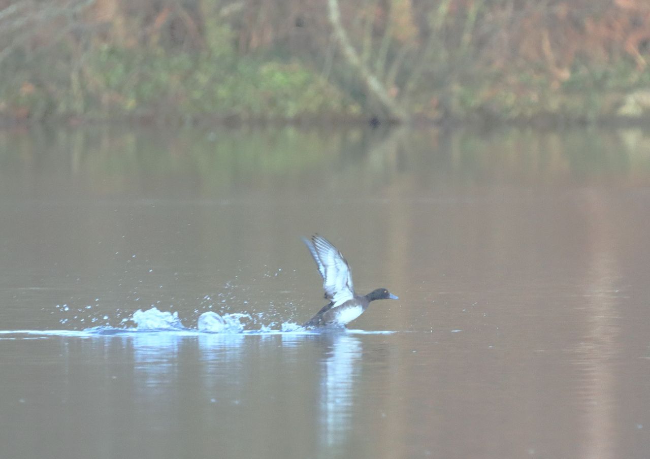 While a few wintering, mostly drake pochards came close to view.