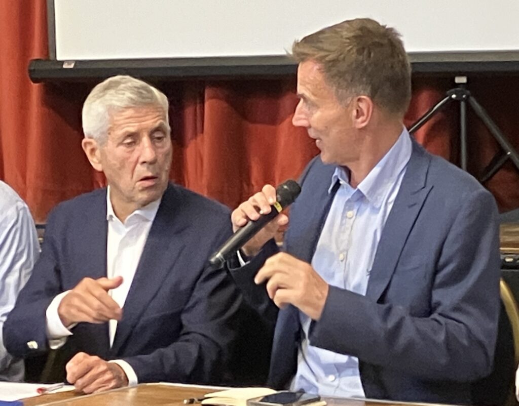 Lord Stuart Rose, then chairman of Asda, and Jeremy Hunt MP at a public meeting held in Bramley Village Hall in July 2024.