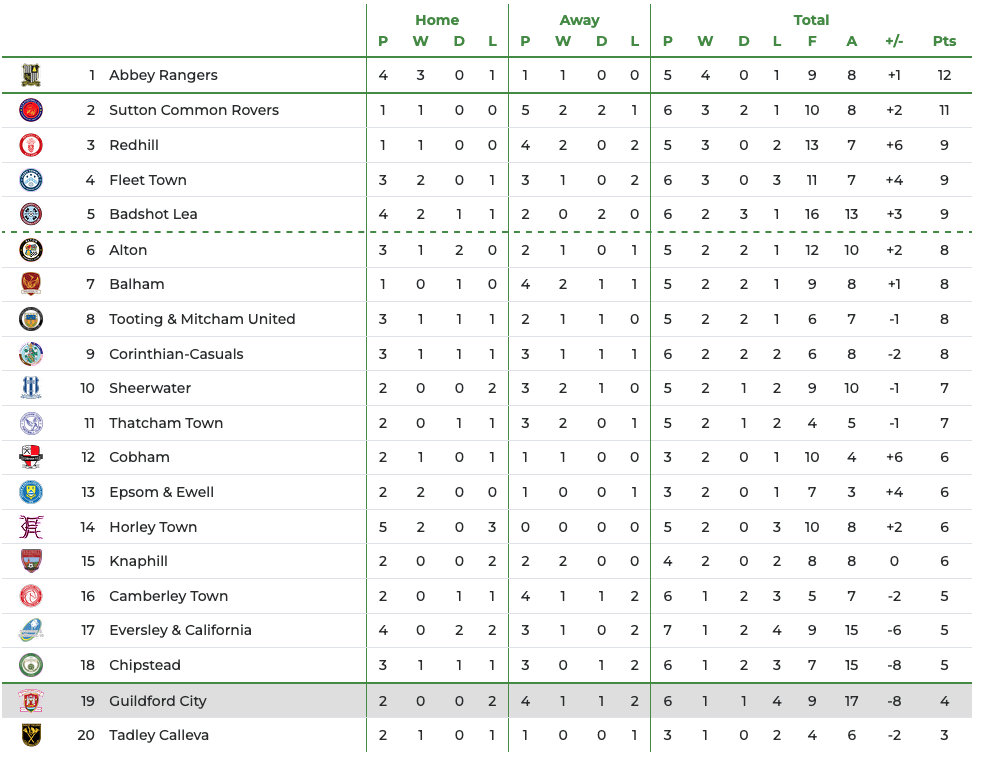 After losing at home on Saturday, Guildford City were determined to get their season back on track with three points against Sutton Common Rovers. But two moments of madness in the opening eight minutes gifted the visitors two goals and it was uphill from there.