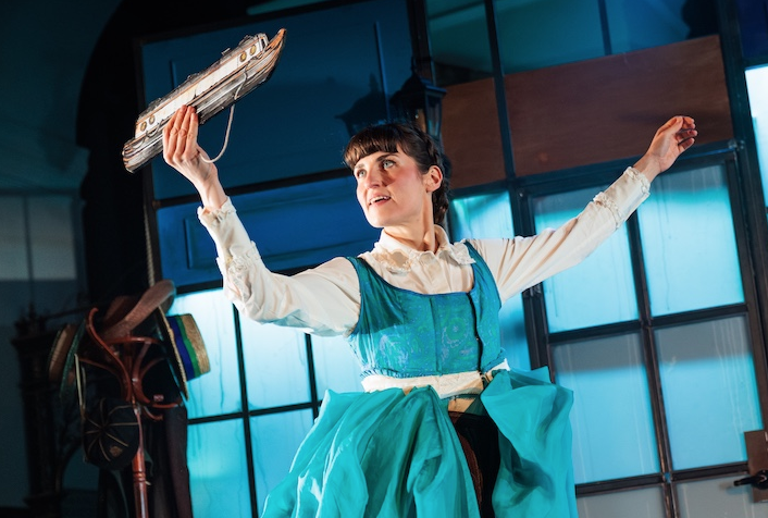 Neil Irish’s intimate yet effective set design, complete with three windows and two doors, became a Narnian-like portal of ingenuity. At the mere snap of a lighting change or the chime of a bell, those two unadorned doors opened onto a bedroom, a warehouse, a school – even a ship!