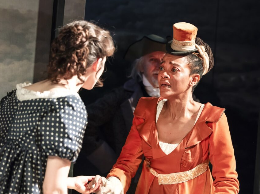 There were good bits too: Lady Catherine de Bourgh (Sarah Berger) had some good lines à la Maggie Smith/Dowager Countess, Lydia Wickham (Mogali Masuku) emoted convincingly about the wrongs done to her husband, and the stripping off of Wickham’s shirt for Elizabeth to wash blood off him amusingly recalled the wet-shirt episode in the film of Pride & Prejudice – but I’m not sure whether that allusion was intentional.