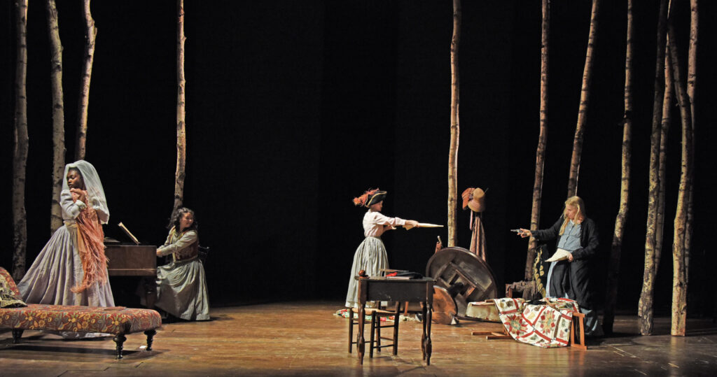 Perry Williams was lively, if a little camp, as “the boy next door” Laurie, while Tom Richardson convinced as each of the two suitors John Brooke and Professor Bhaer, differentiating impressively between them.