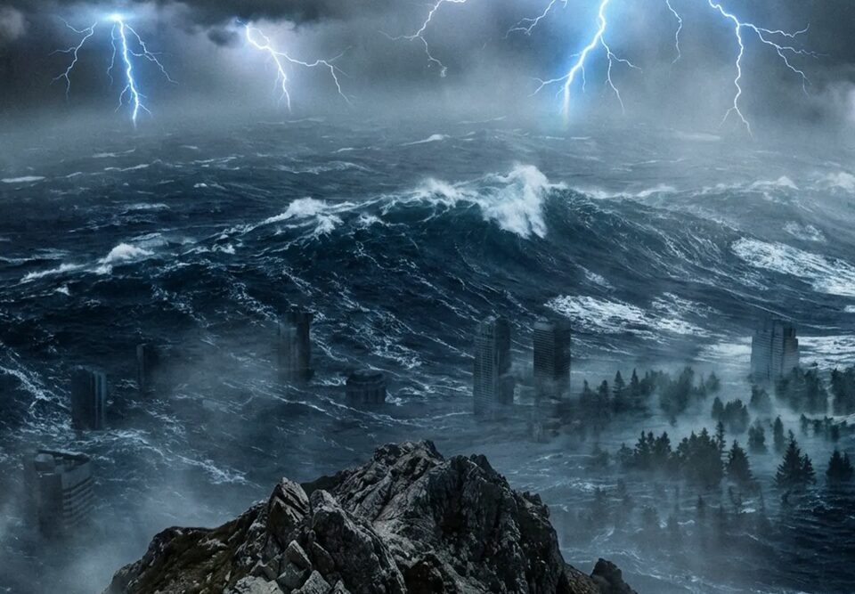 Everyone on the planet is going to drown. Everyone except for a few perceptive individuals who have clambered to the top of Mont Blanc to escape the deluge.