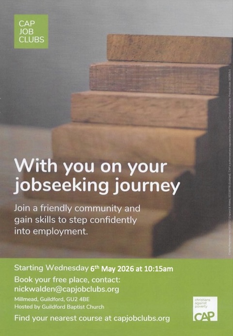 The next CAP (Christians Against Poverty) Job Club programme starts on Wednesday, May 6, at Guildford Baptist Church in Millmead.
