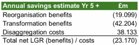 And, when it comes to the idea that efficiency savings from merging different councils will save the day, the report shows that these efficiency savings won’t kick in until five years from now, and even then will only save West Surrey a measly £23 million a year.