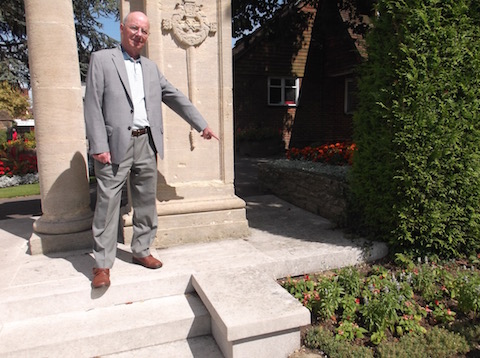 A better place for the memorial paving slabs – in the Castle Grounds by the town’s war memorial as Cllr Bob McShee points out.