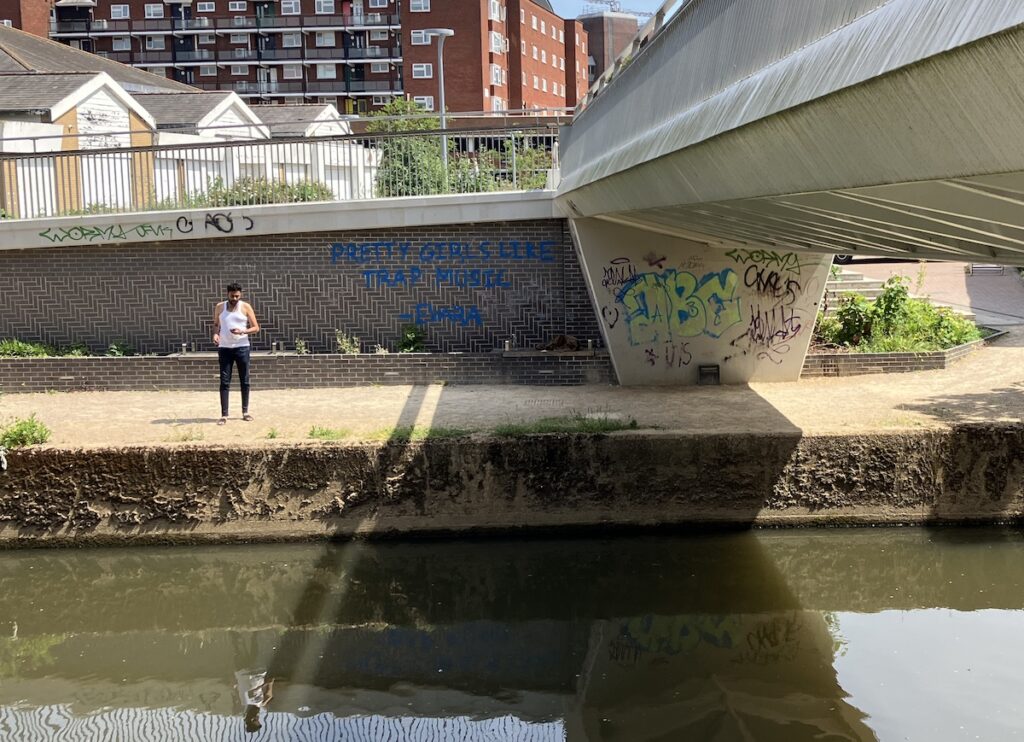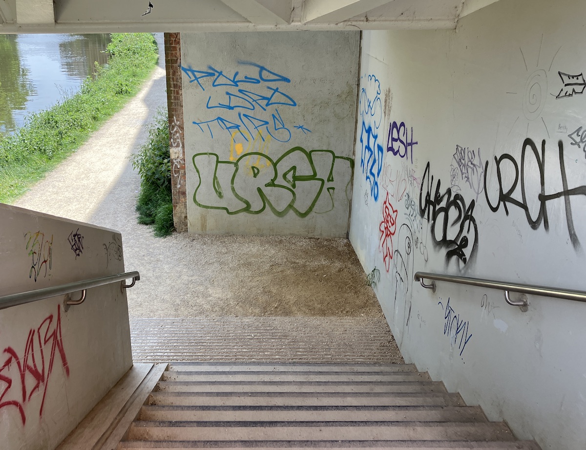 But graffiti remains on other parts of the new Walnut Bridge, on the opposite bank, the flat surfaces proving irresistible to some.