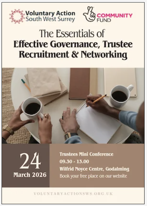 Voluntary Action South West Surrey is hosting a trustee training mini conference for charities and organisations on Tuesday, March 24.
