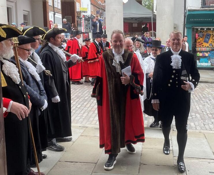 The current Mayor of Guildford, Howard Smith, and The High Sheriff of Surrey, Peter Cluff, entering the Guildhall after the annual Civic Service, The Mayor of Guildford is a civic position with a history spanning over 650 years, dating back to at least 1362.