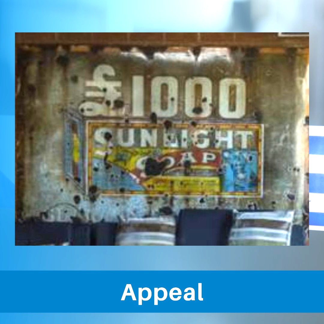 On the Internet, similar signs dating from the 1940s can fetch a few hundred pounds. The sign is an old advertisement with a gimmick: £1,000 is offered to anyone who can prove that Sunlight Soap contained any harmful impurities.