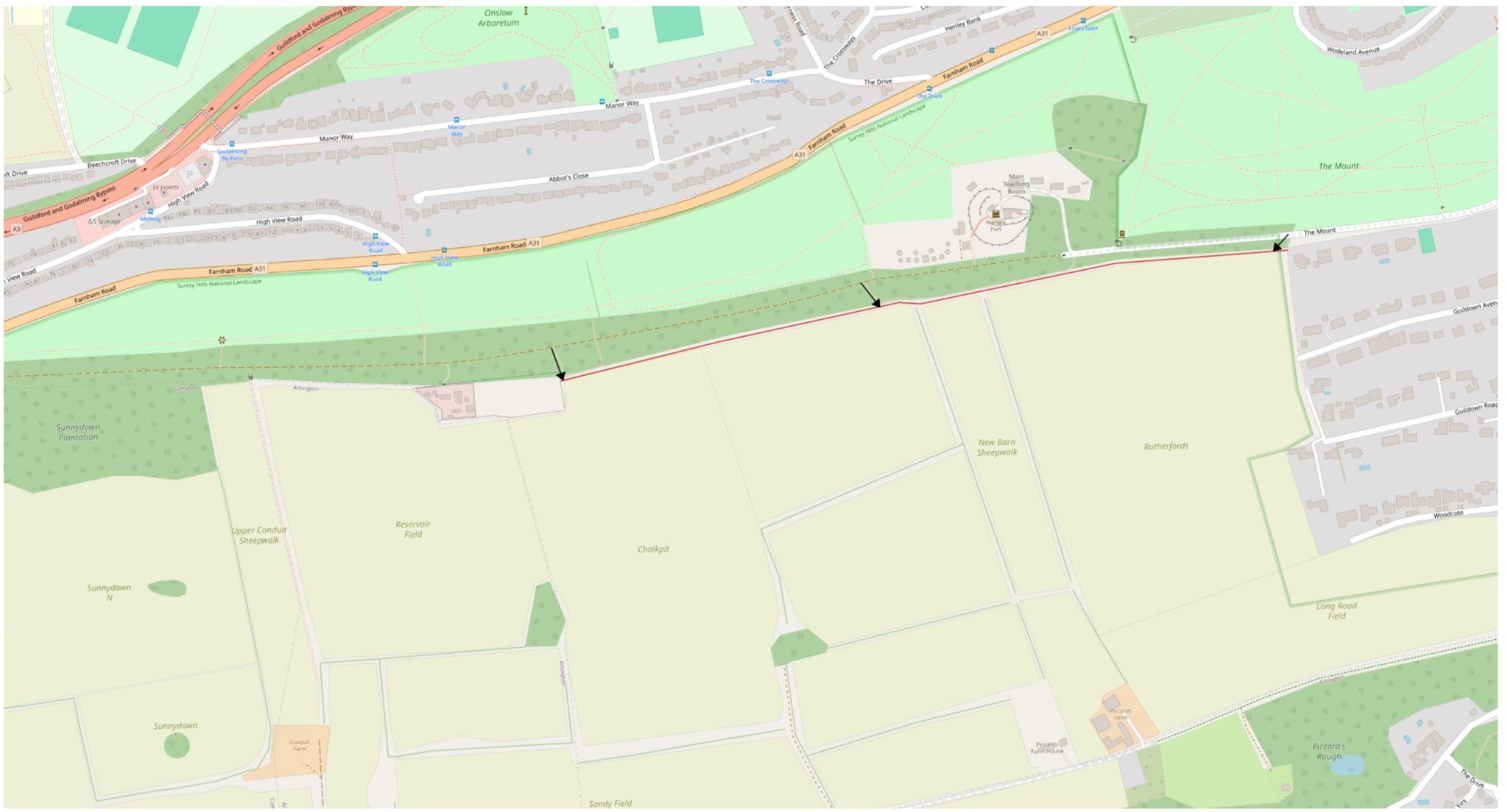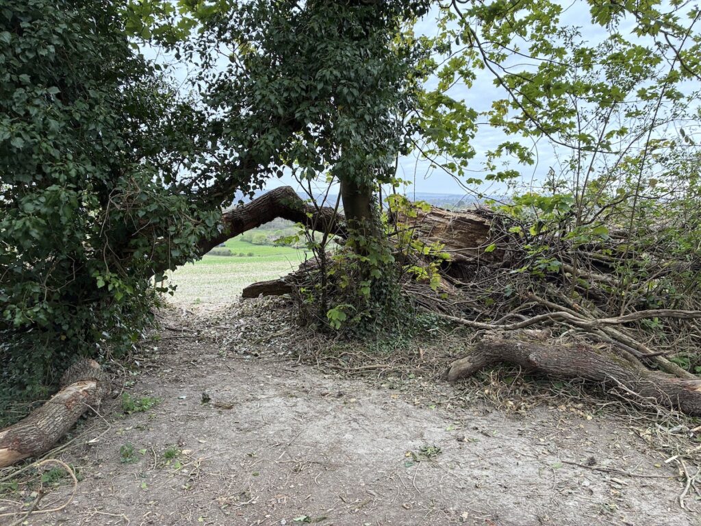 The suggested path line for a renewed Hog’s Back path allowing views to the south: “exactly the path that we’ve been endeavouring to regain since early February”.