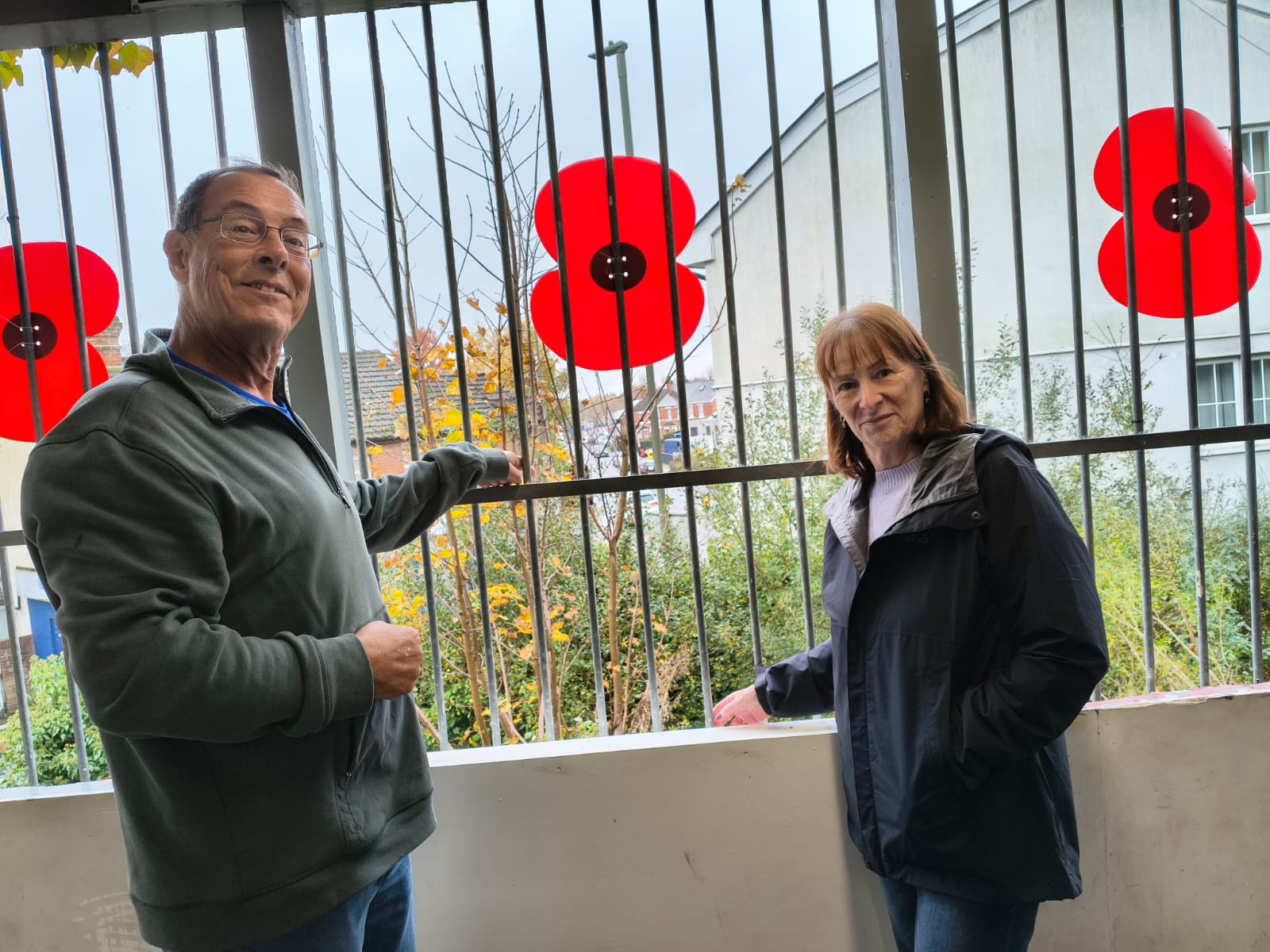 Councillors Richard Lucas and Carla Morson on the steps of Ash Vale Station, pointing out the route of the overflow sluice before the water goes into a culvert under the pedestrian crossing on Vale Road. There it joins the main surface water sewer running under Station Road East.