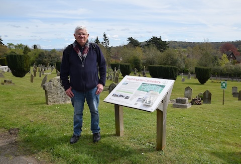 Volunteer Ray Slack, who took the photos at both cemeteries, pictured at Godalming (Old Cemetery), Farncombe.