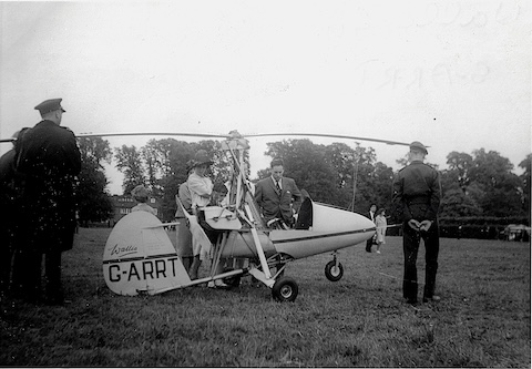 The Ken Wallis Autogyro. The trees in the background are those he banked around while flying into the garden party. Photo courtesy of David Greenman.