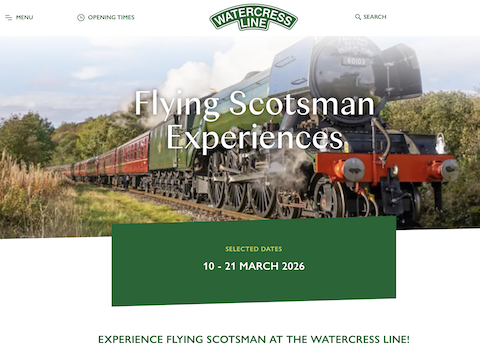 Billed as The Flying Scotsman Experiences, the event at which it will be running at on the Alton to Alresford Watercress Line, is on selected dates from March 10 to 21.